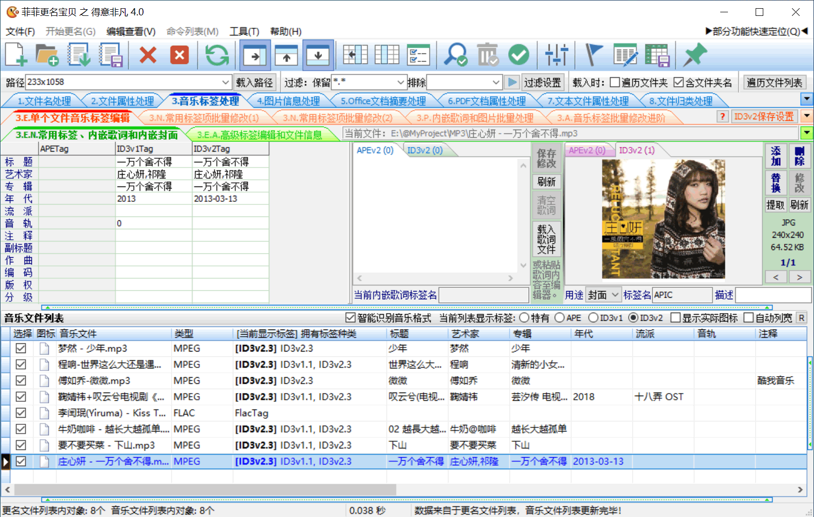 你是音乐爱好者吗?你有大量的MP3、APE、OGG、FLAC等的音乐文件并需要对音乐标签、封面图片或歌词进行批量处理吗?